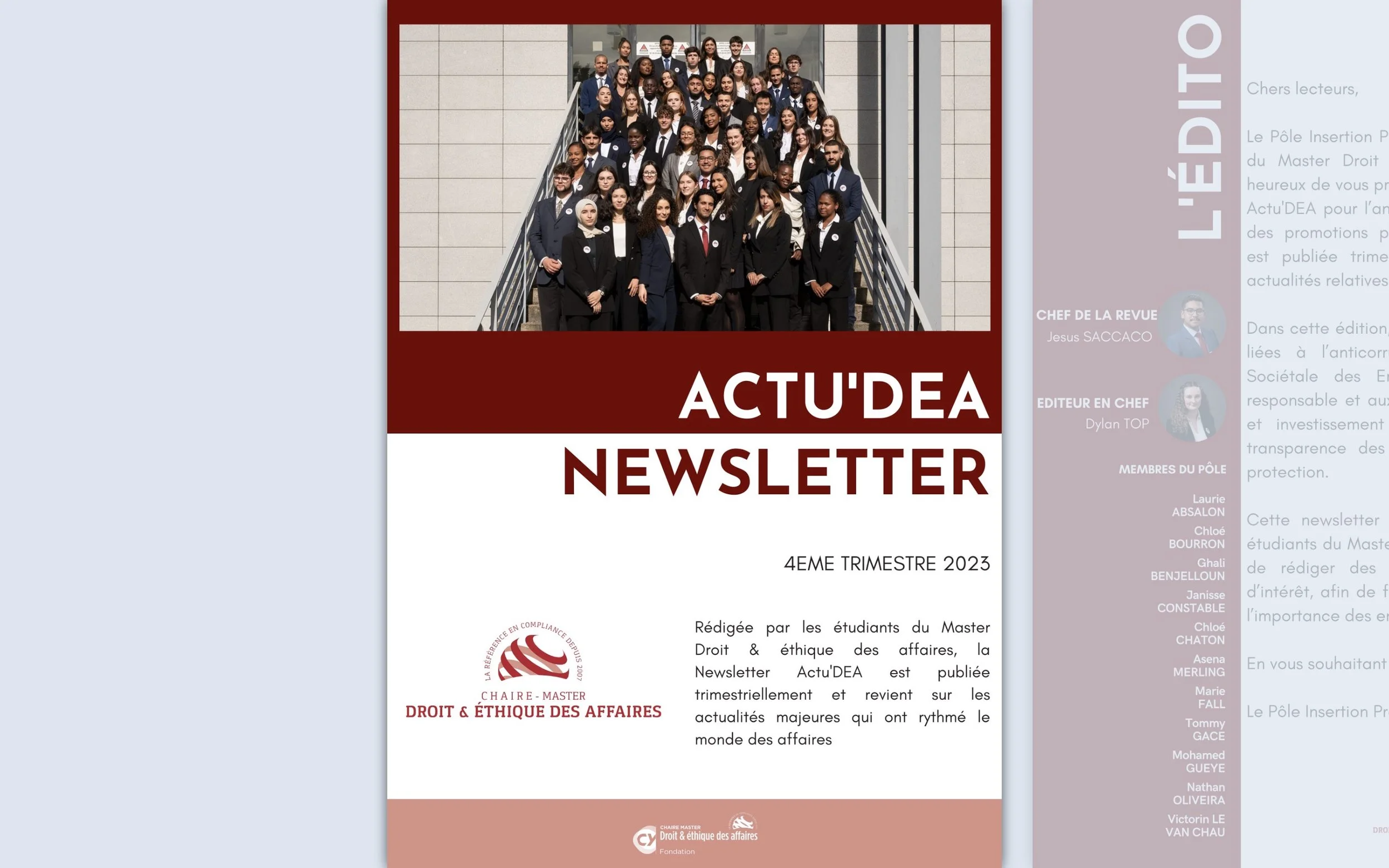 Vous retrouverez les actualités marquantes du quatrième trimestre de l’année 2023 de l’éthique des affaires, grâce à des articles rédigés par les étudiants du Master DEA.
